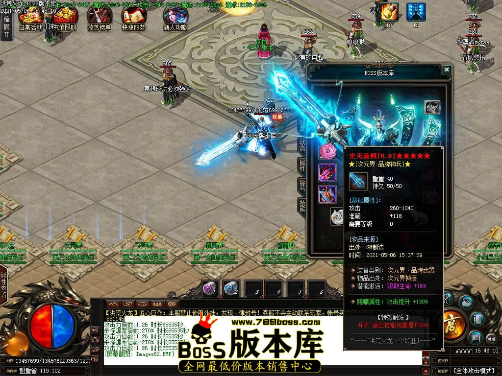 【游戏特色】: 火龙版本,各种BUFF.全新地图.全新玩法,全新装备。