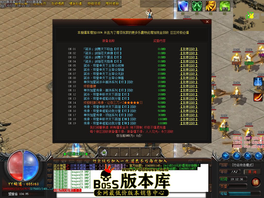每个地图都刷BOSS,24小时终极爆不停!所有消费的50%全部纳入官方沙奖励 人人回本 激情无限 只为人气