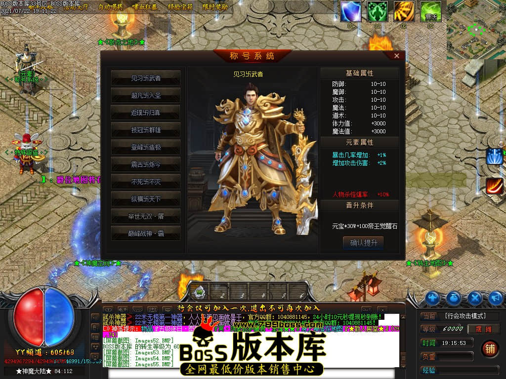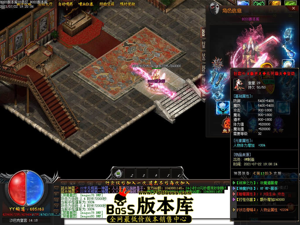 老板玩家350米=20米捐献+2米狂爆+10米结义+终极时装+终极盾牌+弑神剑甲之后直升506 下任何图!