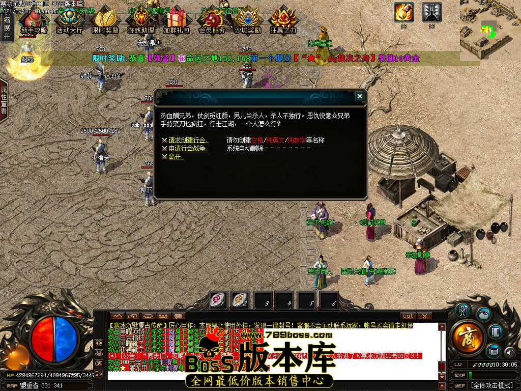 3.打怪获得的元宝先升斗笠,打到限时奖励的黄金可以提升◆·荣誉勋章,属性很好