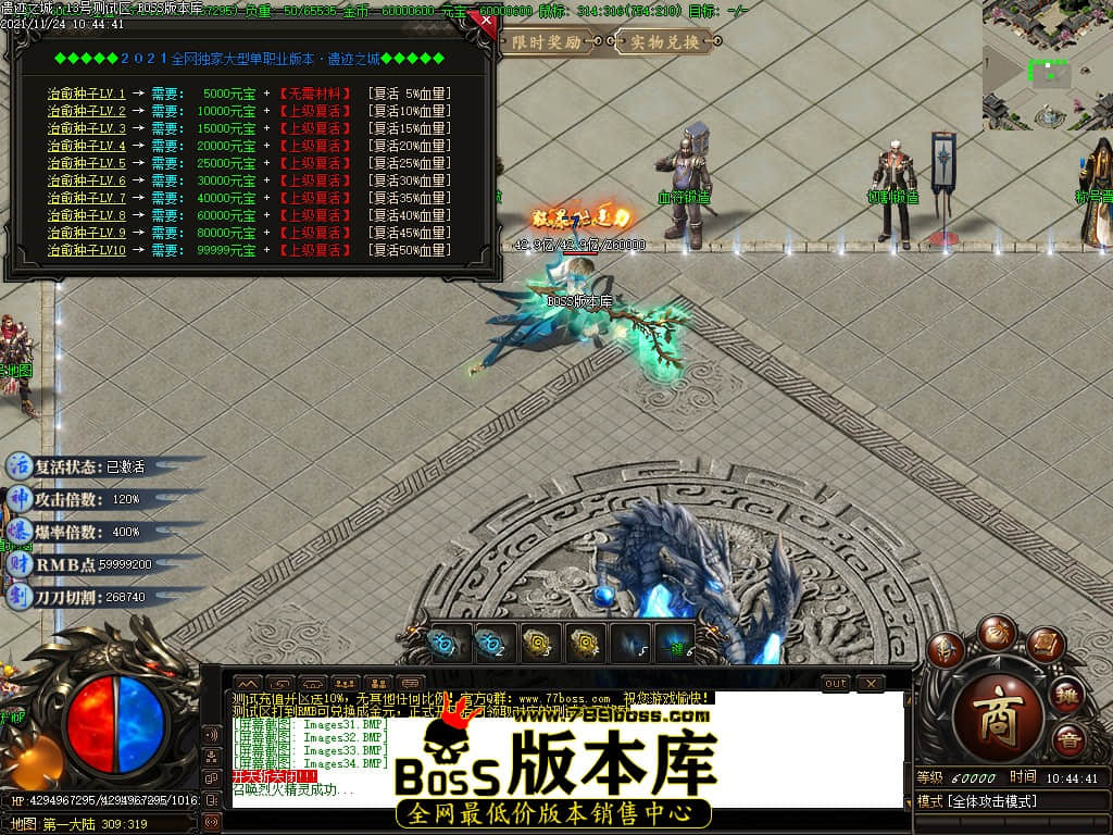 11月最新独家遗迹之城独家专属神器单职业传奇版本-有假人-有光柱-大背包-PG/ESP插件-第五大陆-沙城捐献-狂暴之力-GOM引擎