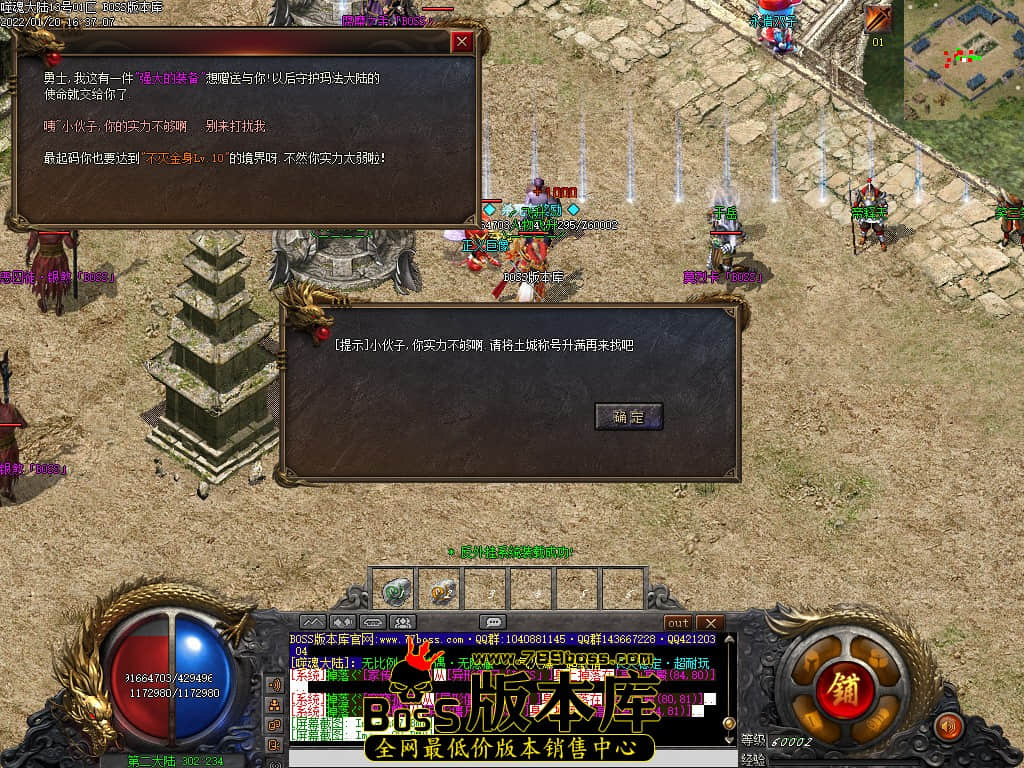 系统:在没有装备的基础上,请不要尝试越级打怪.本服中后期怪物比较强力.