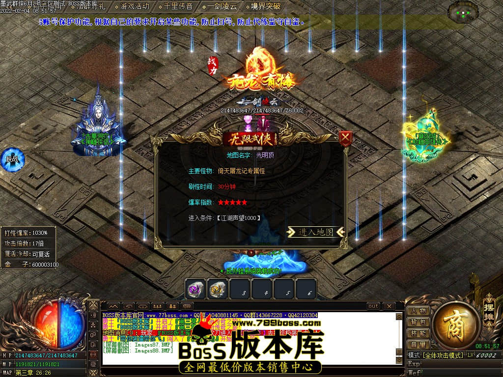 2月最新独家无限武侠专属神器迷失无限刀单职业传奇版本-有假人-有光柱-第四大陆-公益捐献-狂暴之力-GOM引擎