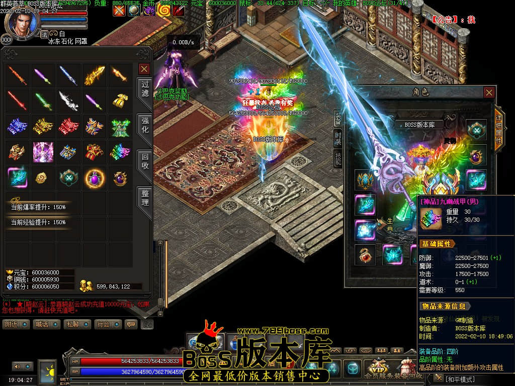 神品装备有几率出满上限装备,本服装备不能洗炼,装备保值!
