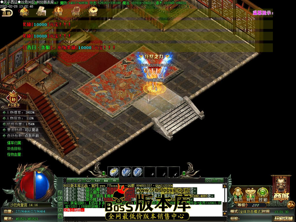 本服元宝非常好打,只要你有时间几小时就能玩满全服,为了方便玩家,【所有材料都可使用元宝在游戏商城中购买】