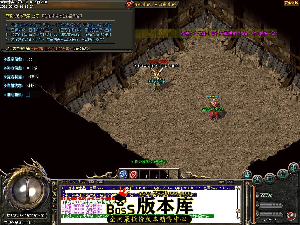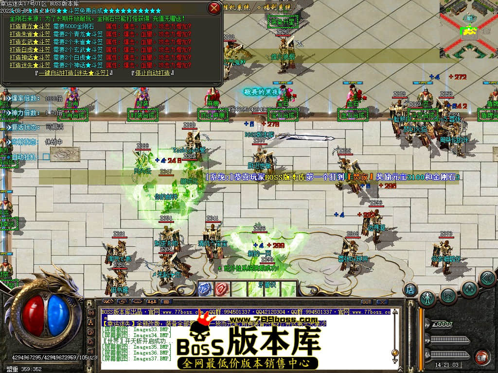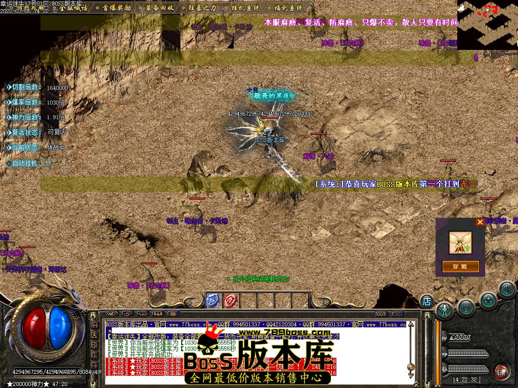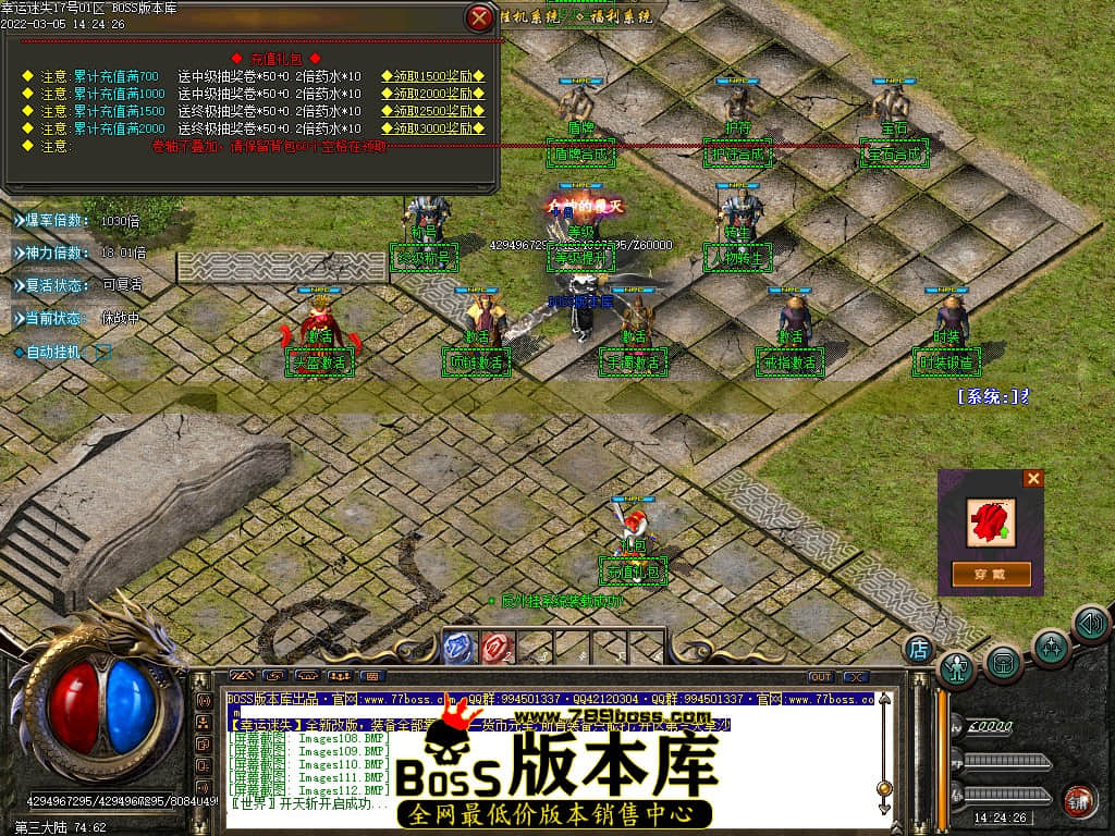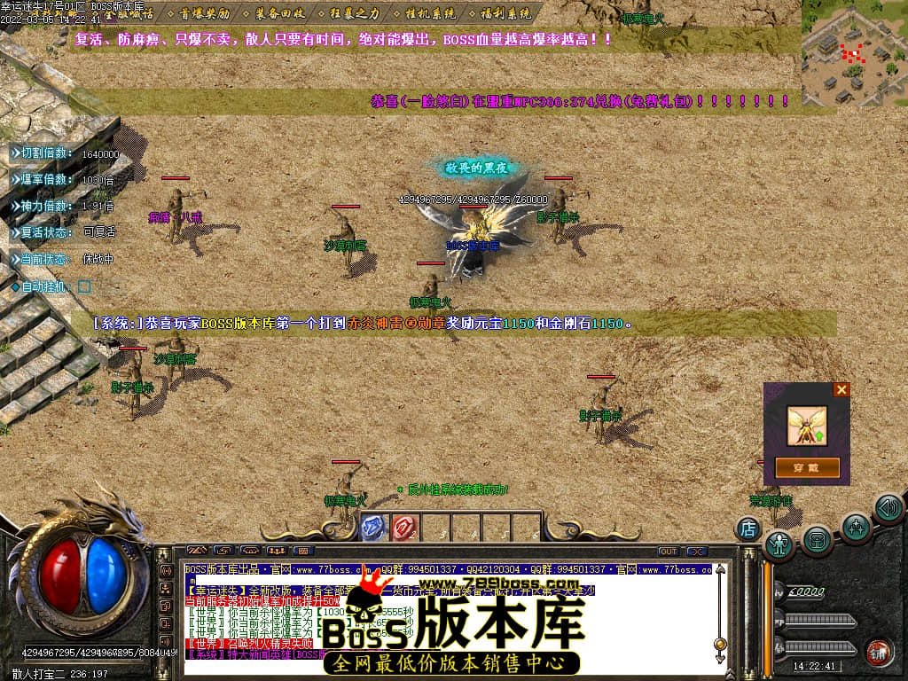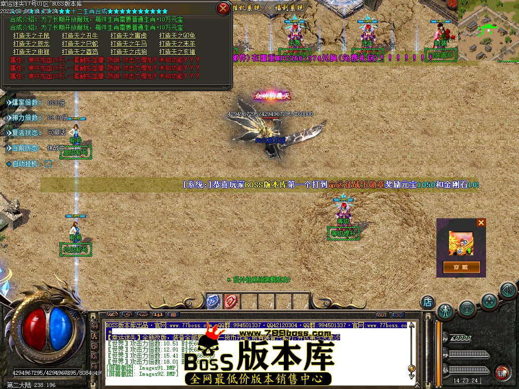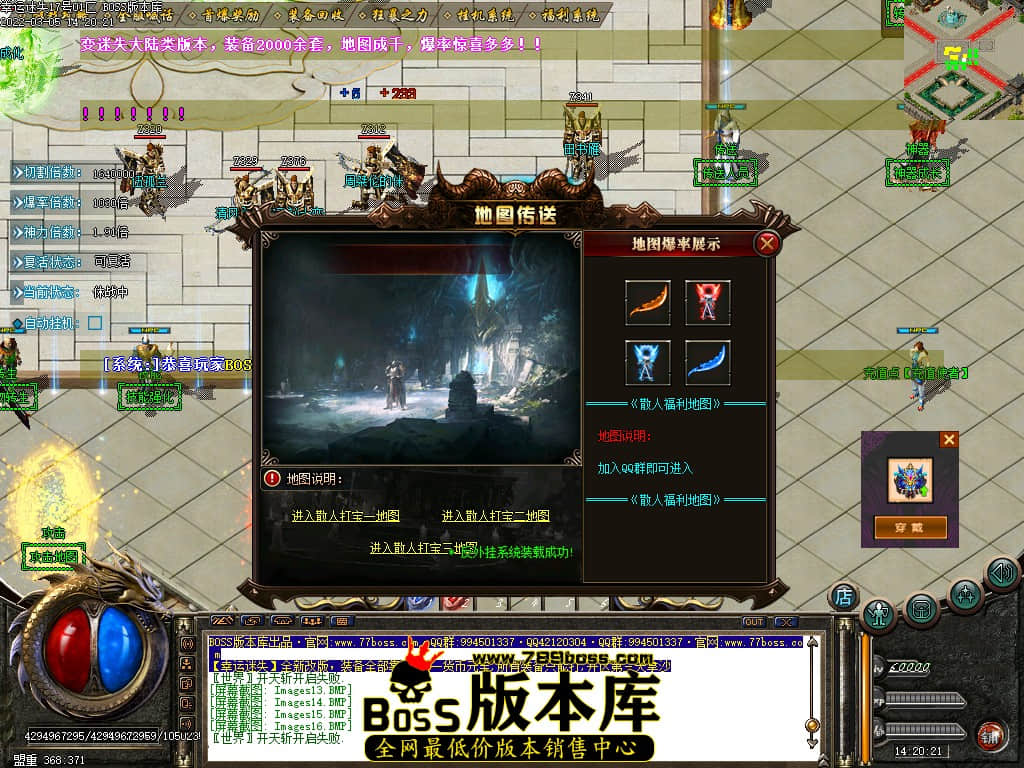 7. 为增加散人发展速度 玩家需要大量打福利BOSS 绝对真实爆率  在狂暴地图每小时刷新6只药水哥 散人必守 必爆(3.0 5.0 8.0)