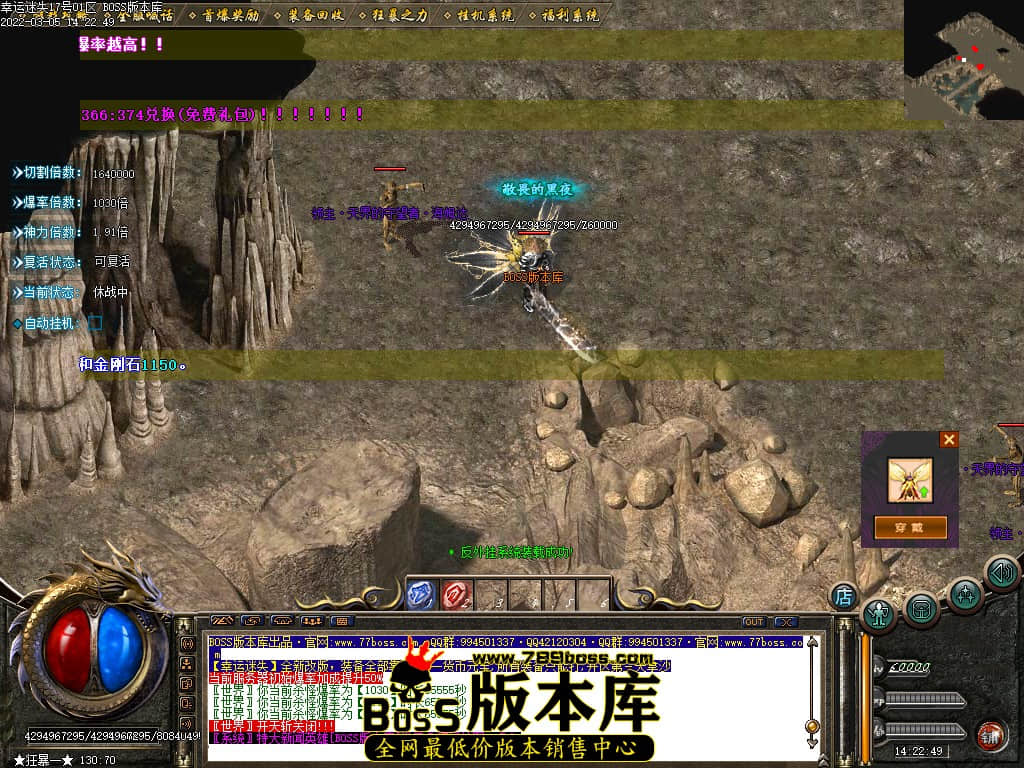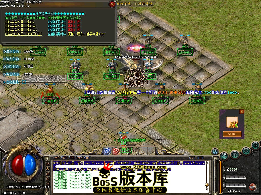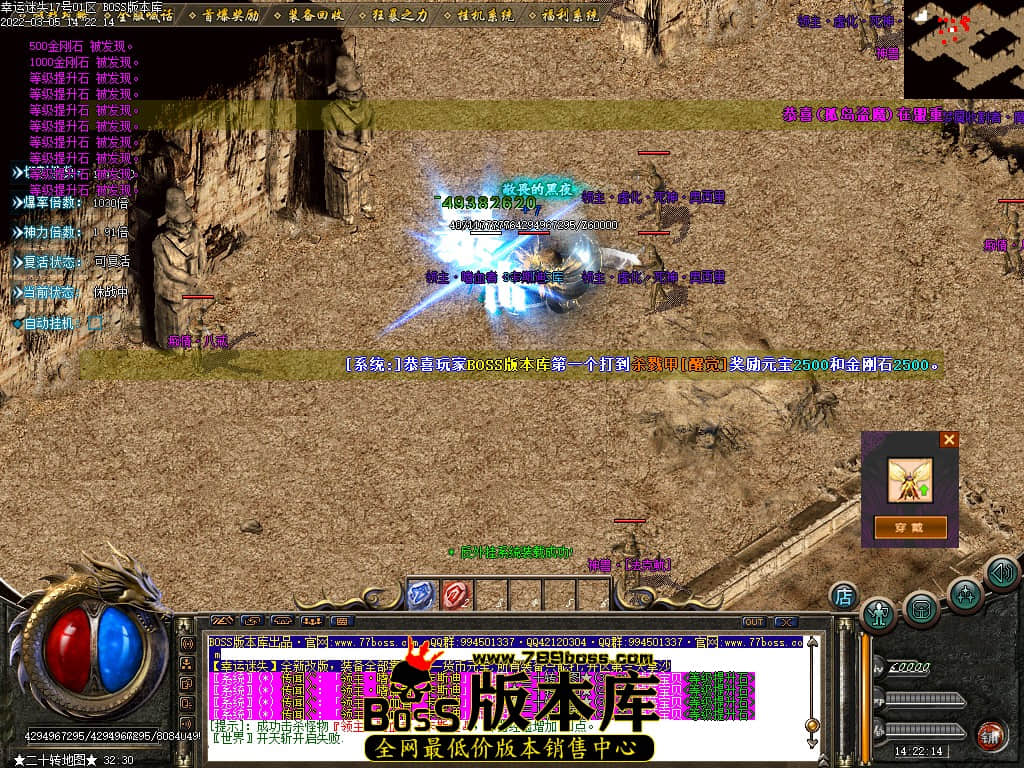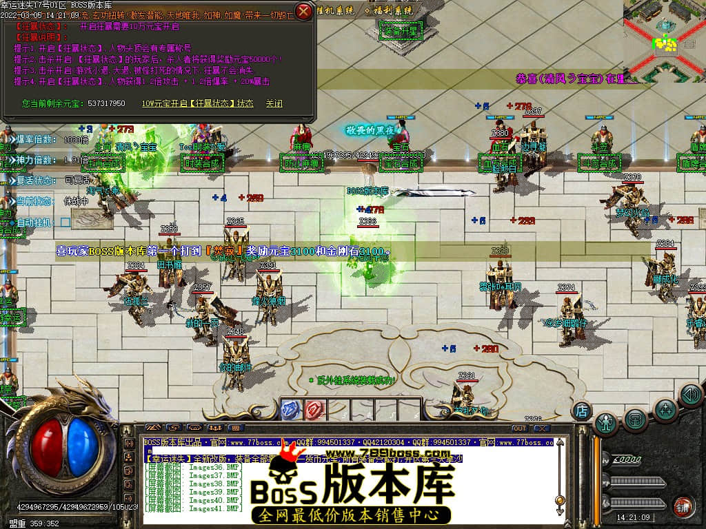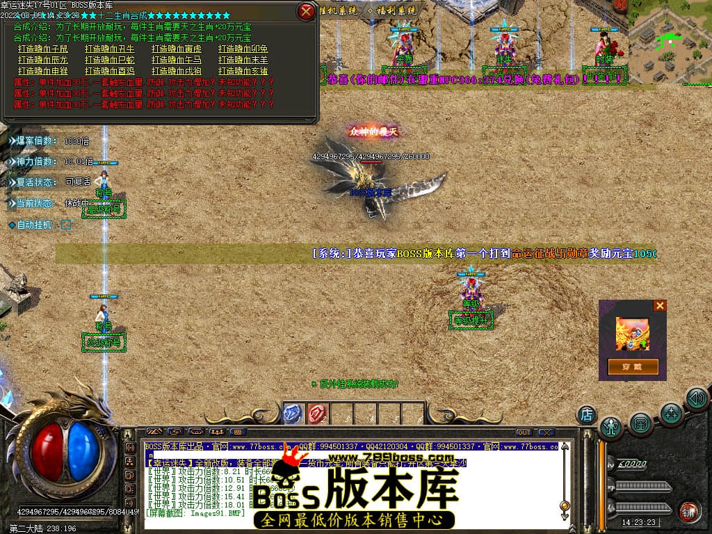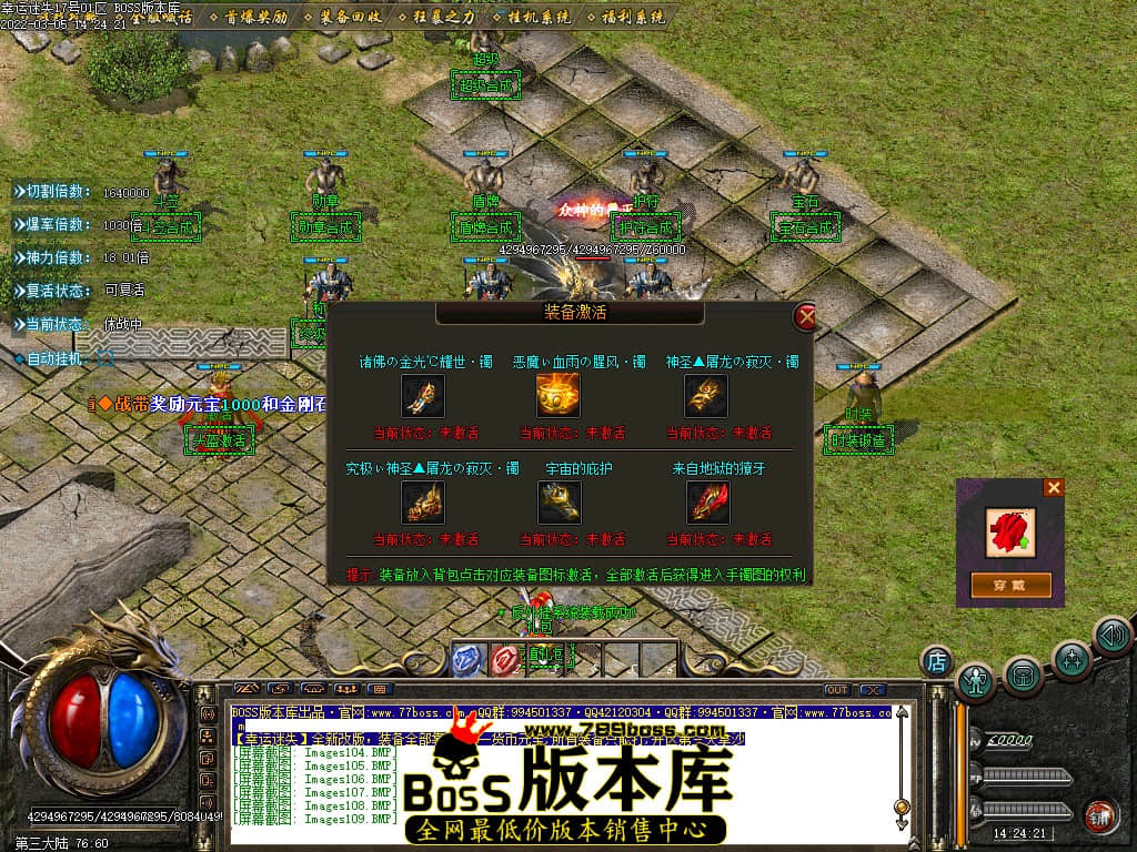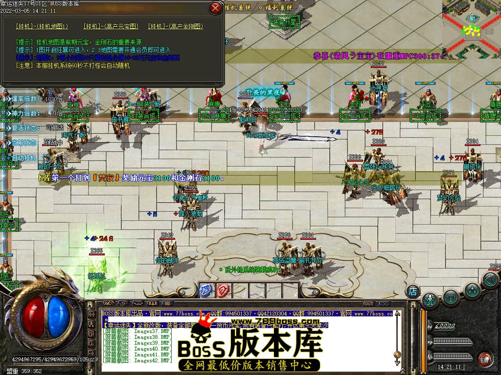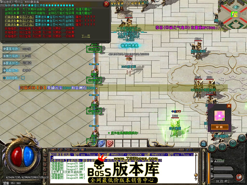 7. 为增加散人发展速度 玩家需要大量打福利BOSS 绝对真实爆率  在狂暴地图每小时刷新6只药水哥 散人必守 必爆(3.0 5.0 8.0)