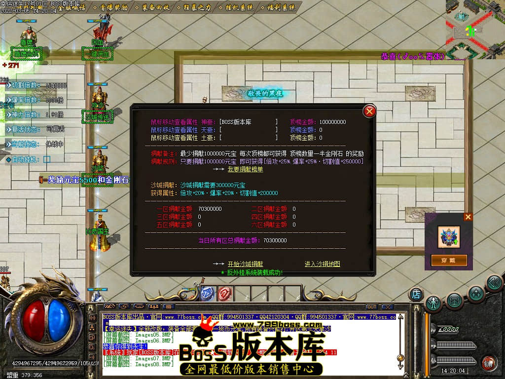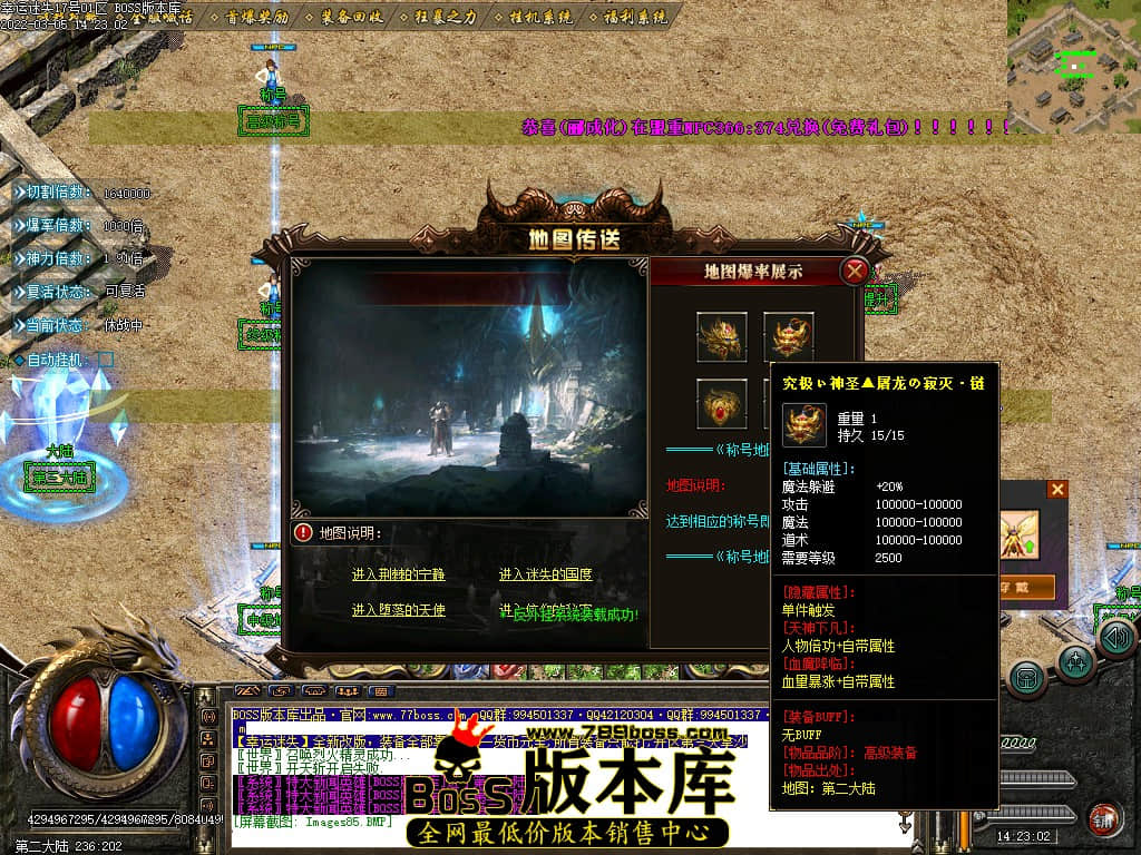 免费捐献地图刷新各种福利活动,永久爆0.2倍爆率药水怪必抢(30W元宝即可),外面地图任何怪都有几率出永久+爆率的药水