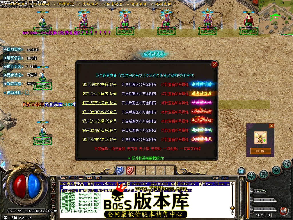 3月最新独家品牌大服幸运迷失单职业传奇版本-智能假人-有光柱-大背包-PG/ESP插件-沙城捐献-狂暴之力-GOM引擎
