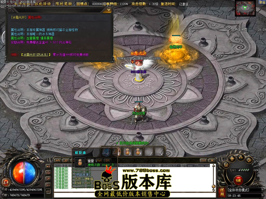 超级神豪起号:充值388元,领取所有回馈外加黄金地图武力盾使者,领取材料后可直接在土城右上角合成指环王(攻速暴增+切割戒指)