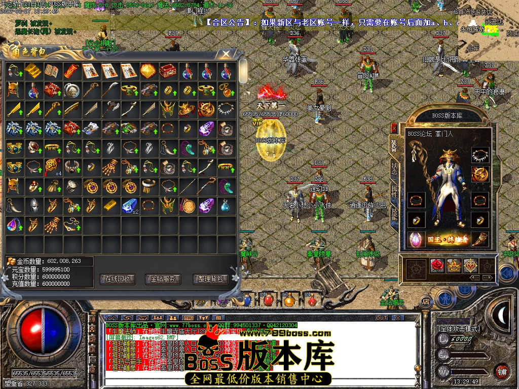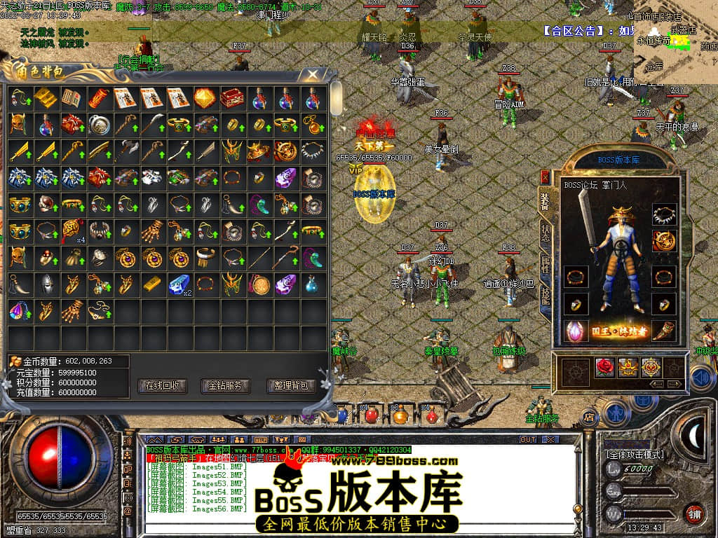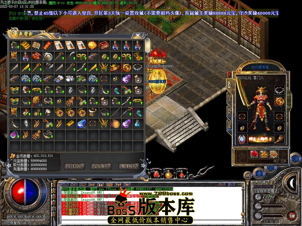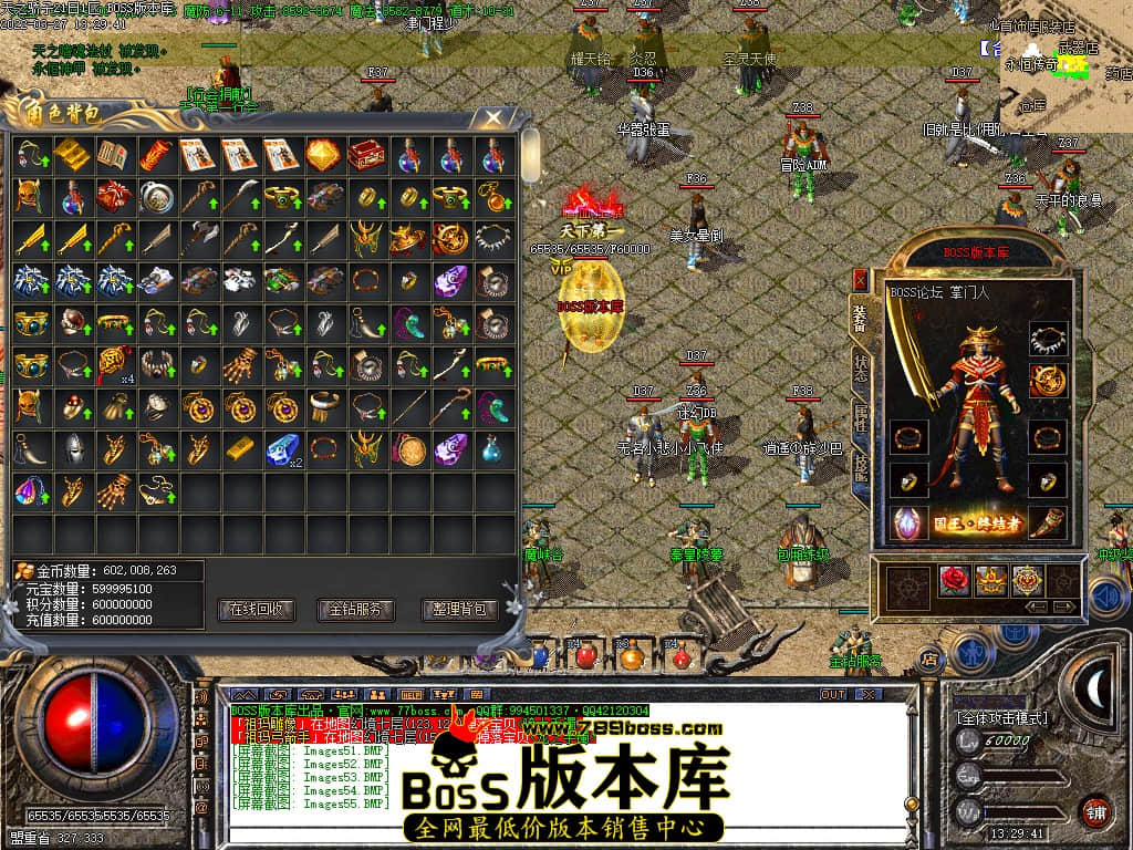 6.52级可以免费领取终极装备天之神甲/神袍,BOSS有几率爆出极品天之装备