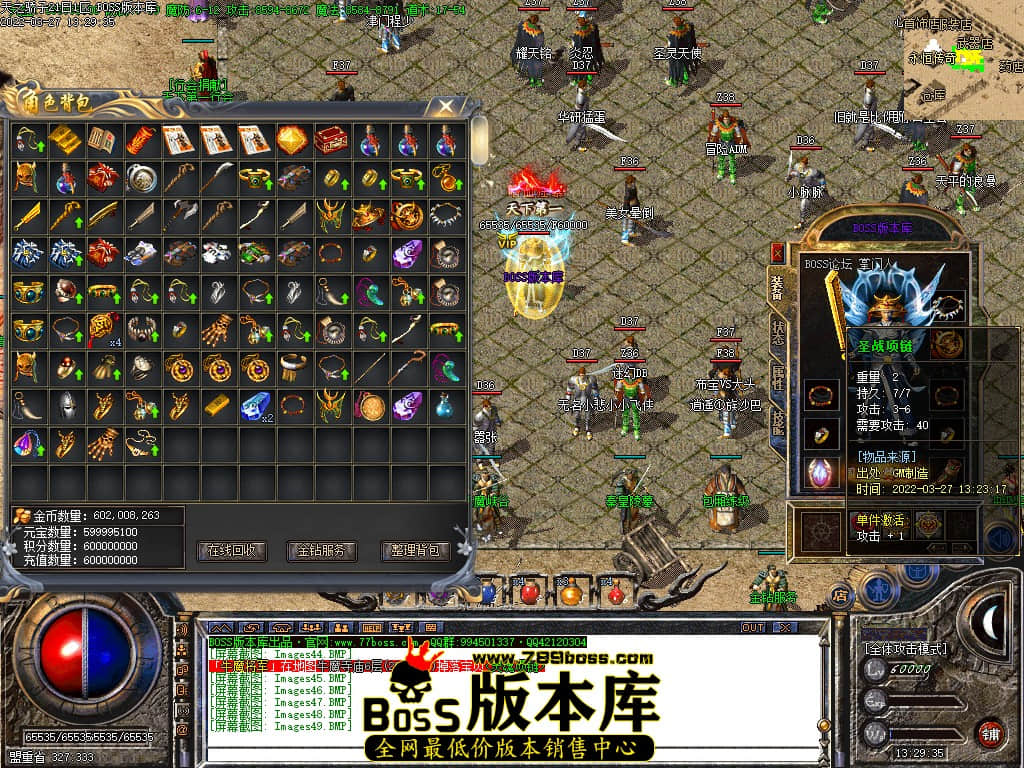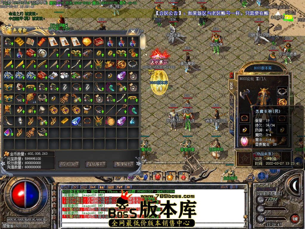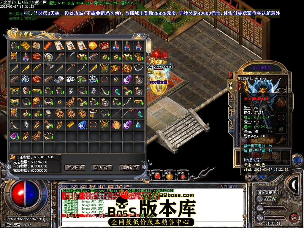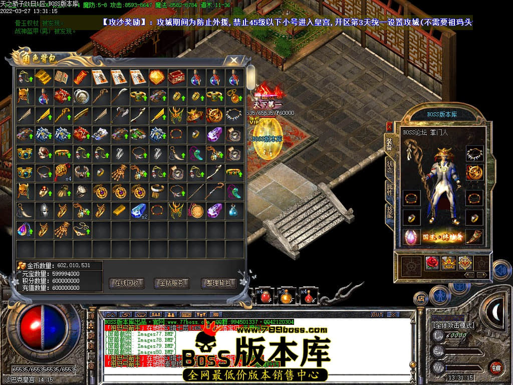 6.52级可以免费领取终极装备天之神甲/神袍,BOSS有几率爆出极品天之装备