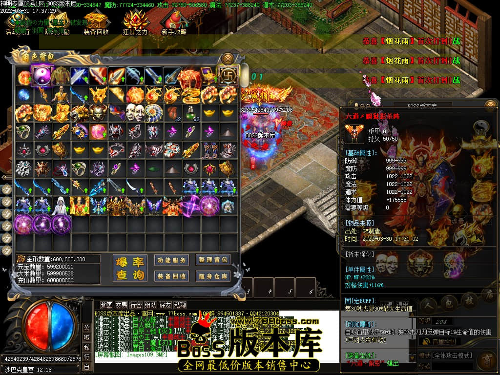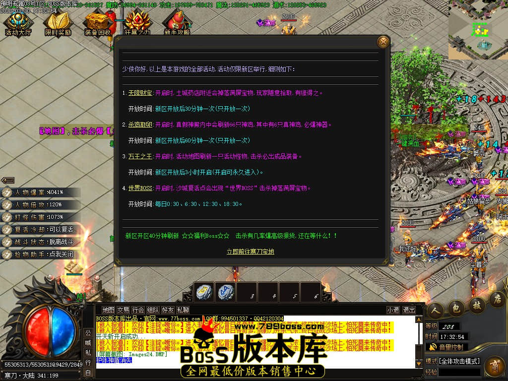 装备,元宝,材料,全靠爆,花时间,不充一分钱也可以混上去,打到永久回收装备是可以换米好玩的哦