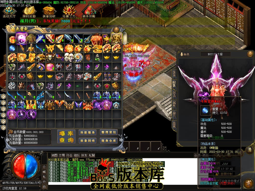 免费礼包赠送:“神界执法者”微章:佩戴可开启自动捡物,人物隐身,聚宝盆,攻速魔戒,人物十转