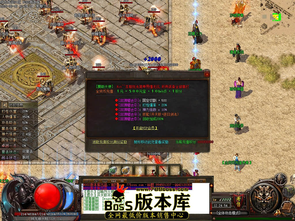 【游戏介绍】:全货币充值1元 = 500元宝 + 10RMB点 + 1积分