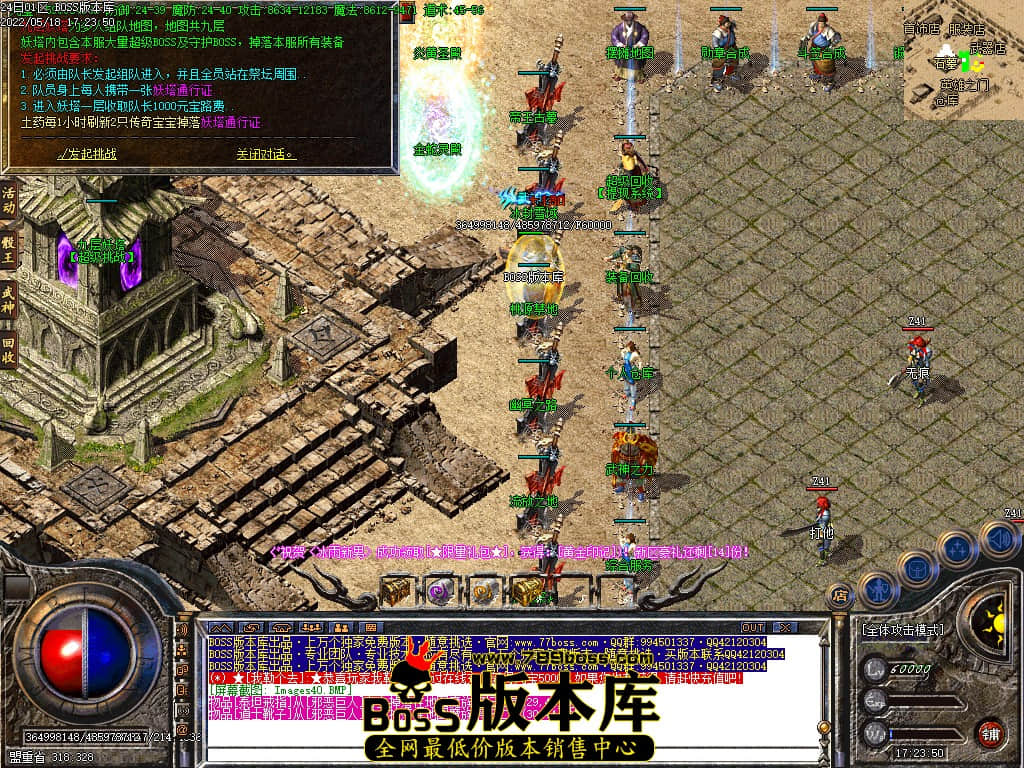 版本介绍:复古1.76三职业,复古素材,简单耐玩,爬塔,有好玩NPC,可独家
