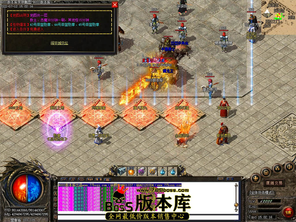 BOSS集中营查看活动介绍地图刷新全服BOSS,地图内叠加1.3倍爆率参加活动BOSS集中营