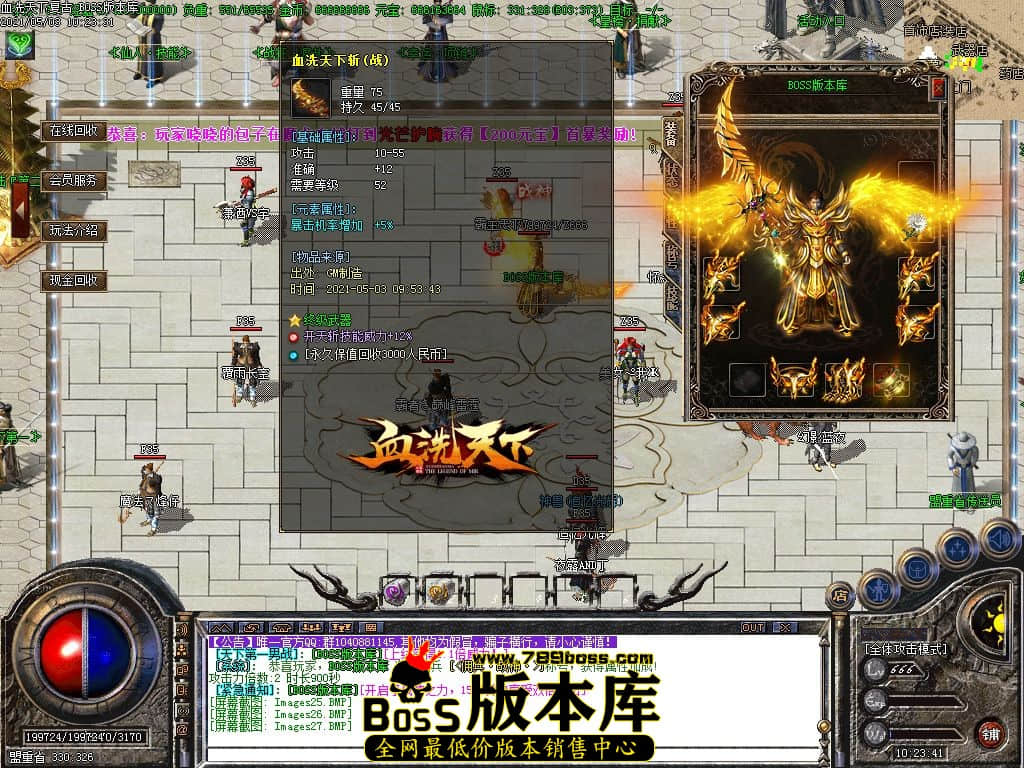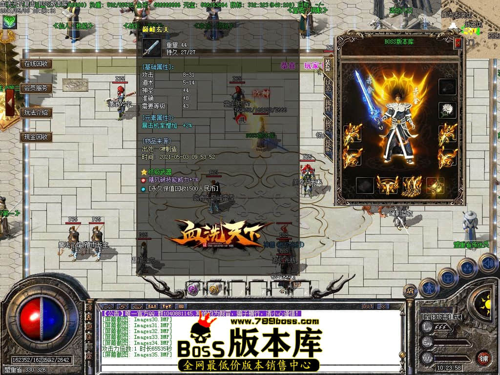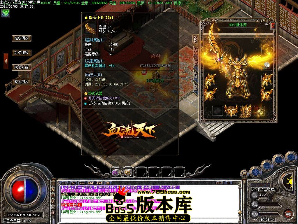 【BOSS版本库】独家【血洗天下】复古三职业-火符锻造-雷鼓锻造-小极品元素-假人系统-血洗佣兵