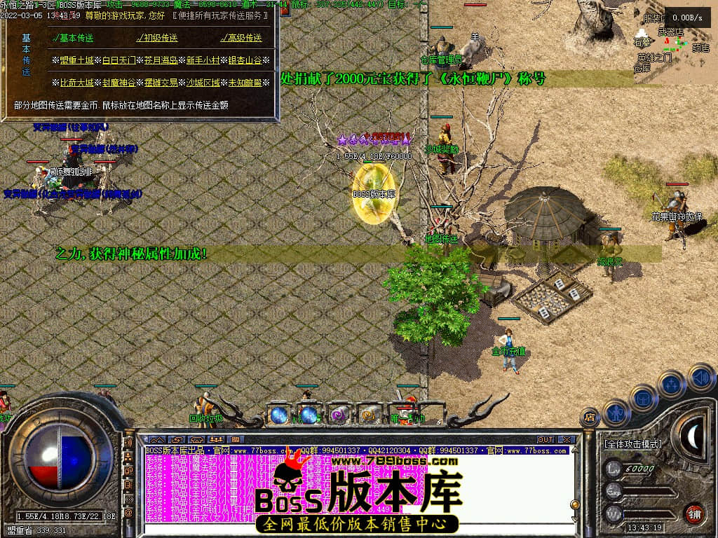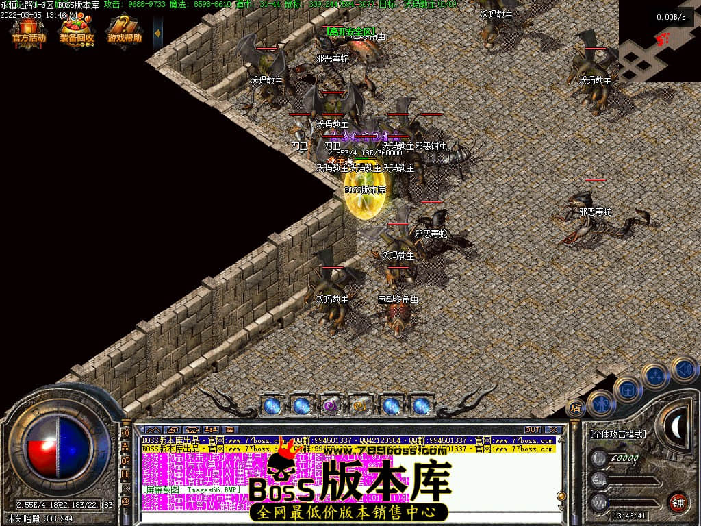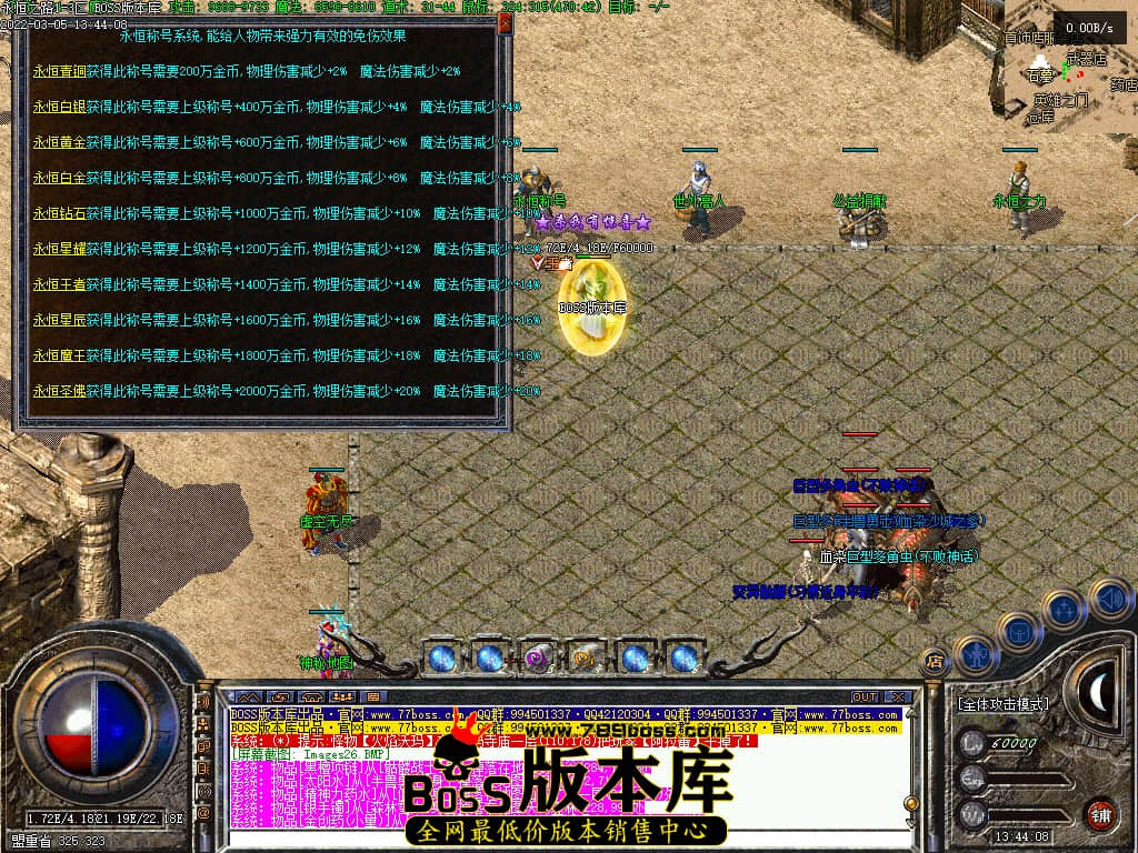 【游戏介绍】:本F永恒系列,都靠打BOSS爆出。增加《装备全爆》2.2W血,《龙王》3.6W血!