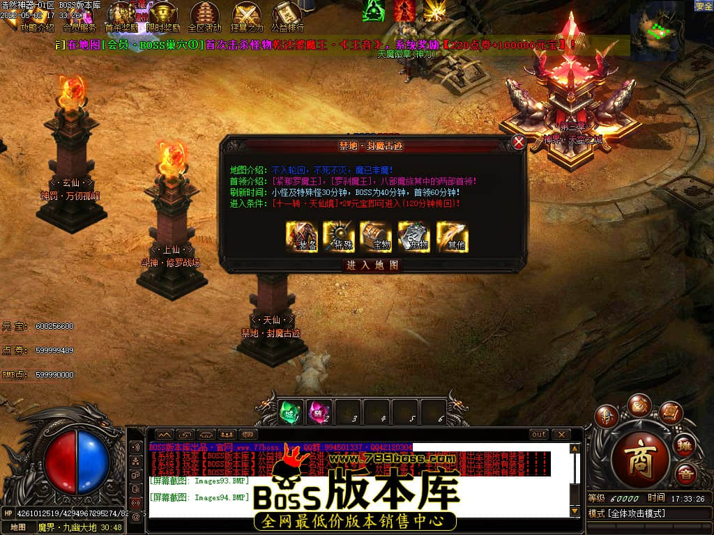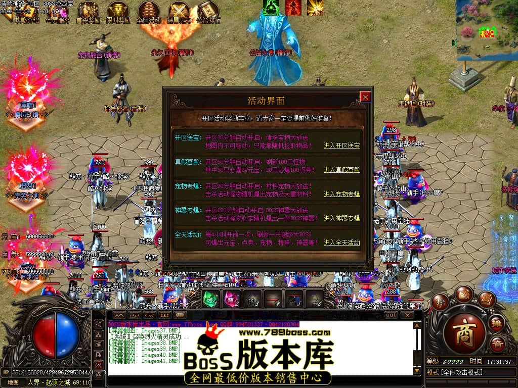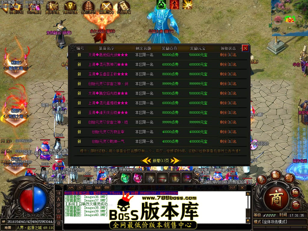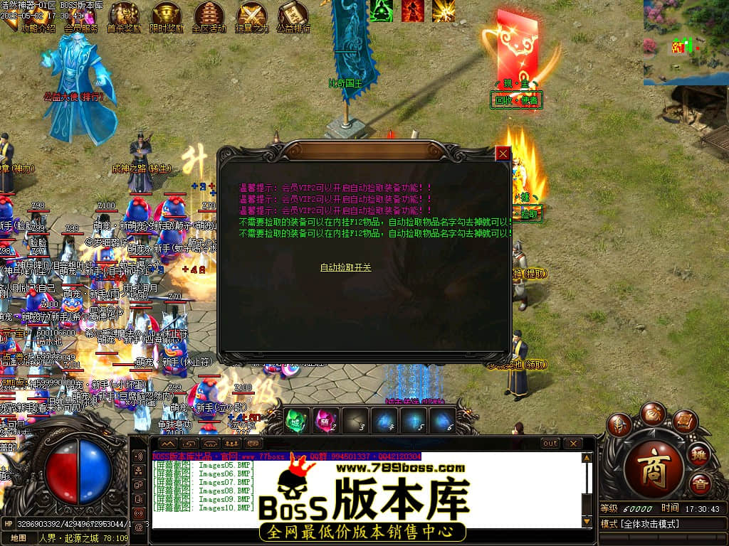 版本介绍:本服所有小怪即可爆出终极装备、所有大小Boss爆终极剑甲、点卷等各种特殊装备、装备全可以爆出!!!