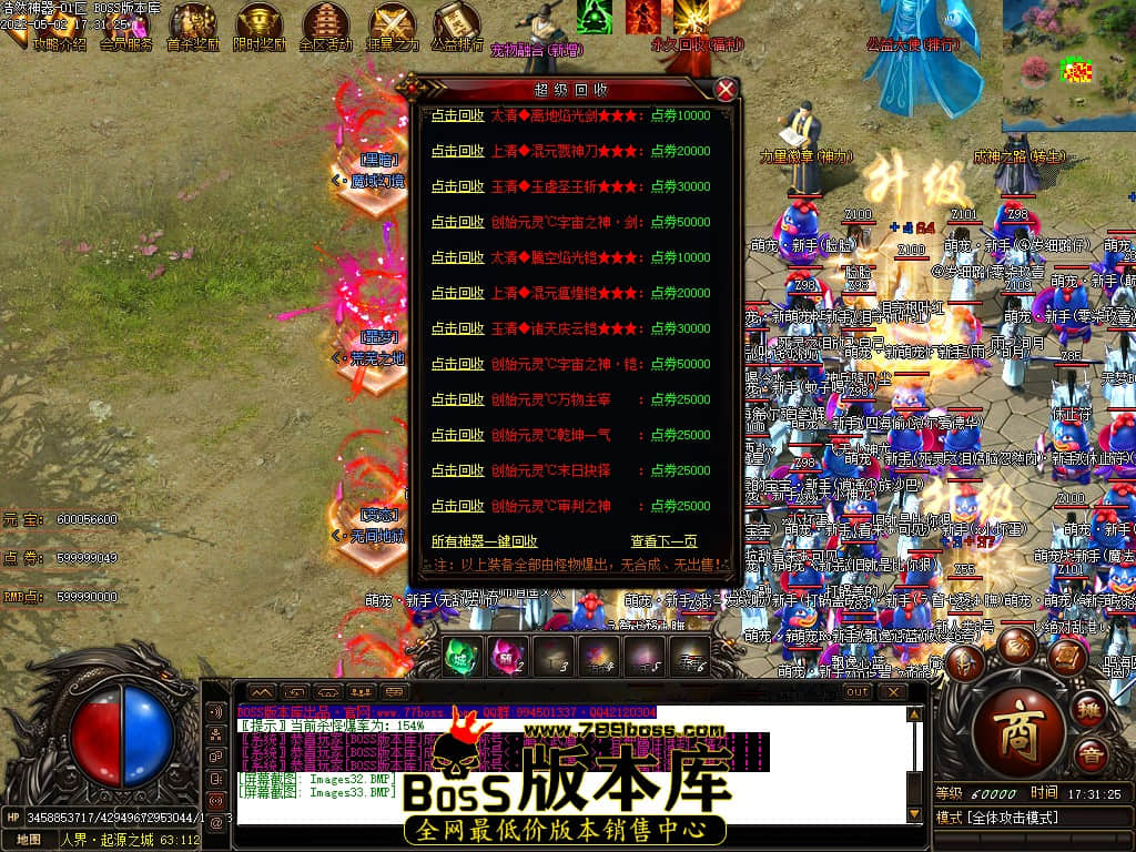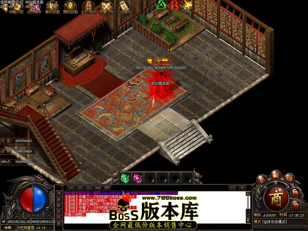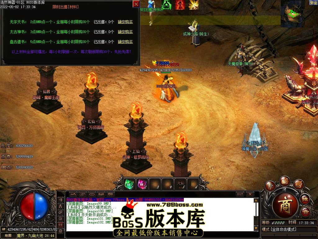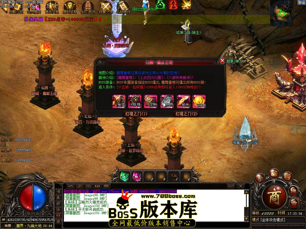 版本介绍:本服所有小怪即可爆出终极装备、所有大小Boss爆终极剑甲、点卷等各种特殊装备、装备全可以爆出!!!