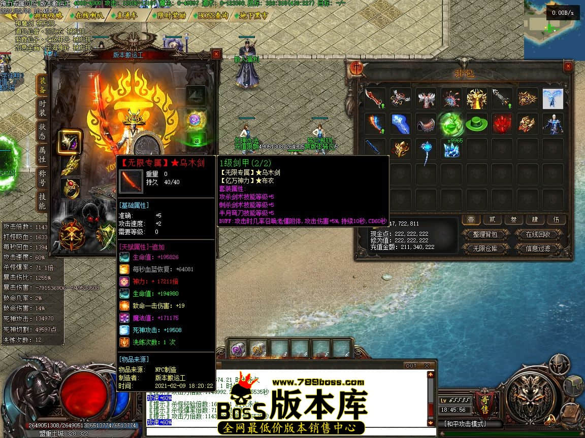 武器:【无限专属】★乌木剑 专属BOSS:新手村霸主 刷新地图:比奇大城、天空之城
